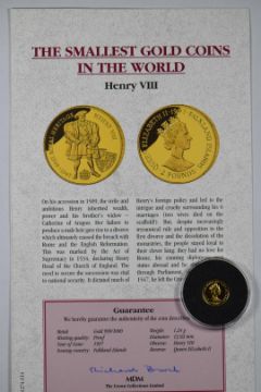 1977 MDM miniature gold coin Henry VIII, Falklands issue, with certificate, 1.24g