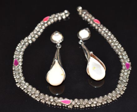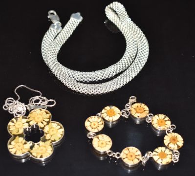 Nineteen silver necklaces/ chains and pendants including St Christopher, pearl, coral, lace agate, earrings, bracelets, etc