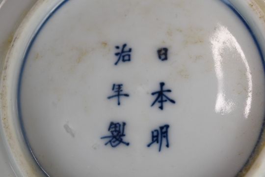 19thC Chinese blue and white dish with six character mark to base, diameter 16cm
