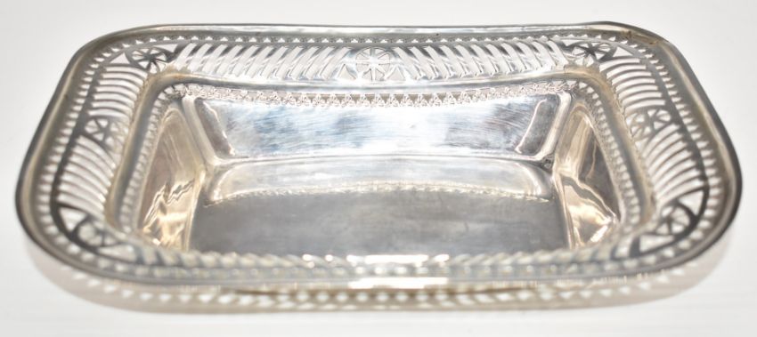 Edward VII hallmarked silver bowl with pierced decoration, Sheffield 1904, maker Z Barraclough & Sons, length 24cm, weight 223g