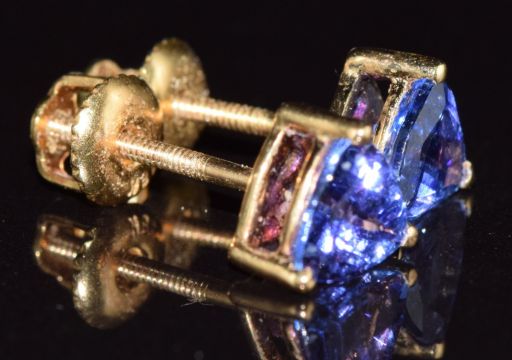 A pair of 18ct gold earrings set with trilliant cut tanzanites, each approximately 0.5ct, 1.4g