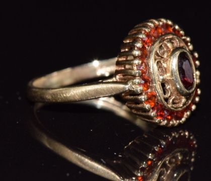 A 9ct gold ring set with garnets, 2.3g, size J