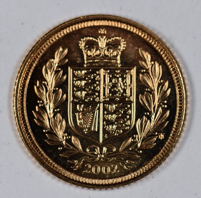 2002 QEII fourth head gold half sovereign, shield reverse, in case