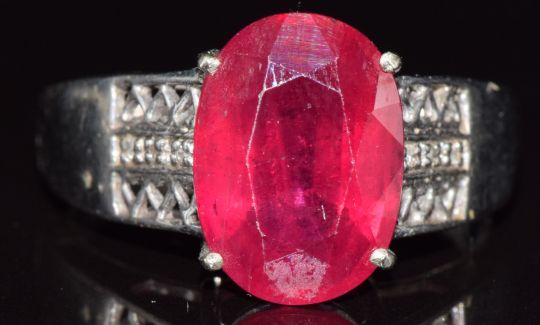 A 9ct white gold ring set with a ruby and diamonds, 6.5g, size W