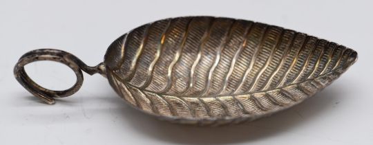 Georgian hallmarked silver novelty tea caddy spoon formed as a leaf, Birmingham 1801, maker's mark IT, length 7cm, weight 6cm