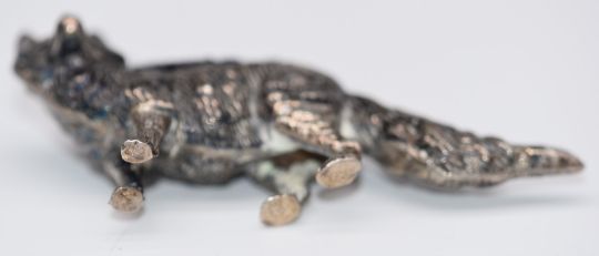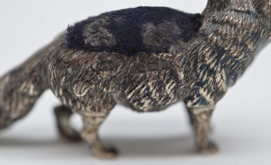 Edward VII hallmarked silver novelty pin cushion formed as a fox, Birmingham 1906, maker Levi & Salaman, length 6cm