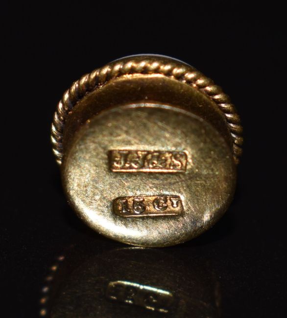 Three 15ct gold studs set with carved agate depicting Masonic symbols, 4.2g