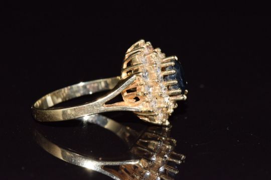 A 14k gold ring set with a sapphire and cubic zirconia, 4.5g, size O