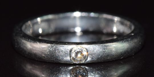A platinum ring set with a diamond of approximately 0.1ct, 7.4g, size Q