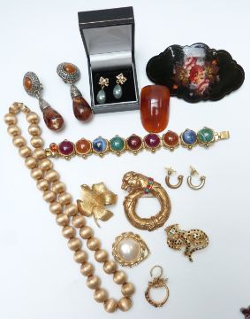 A collection of costume jewellery including Hollywood brooch, Trifari necklace, silver pendant, etc