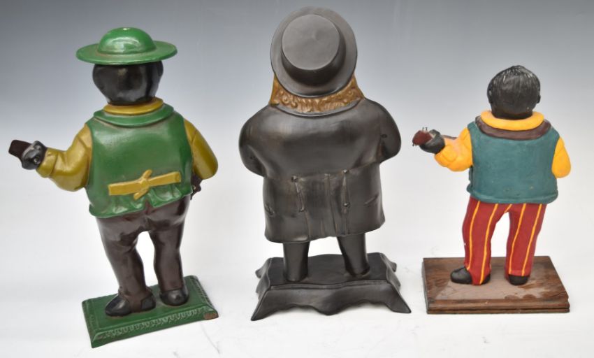 Three novelty cast iron and similar figural clocks, height of tallest 39cm