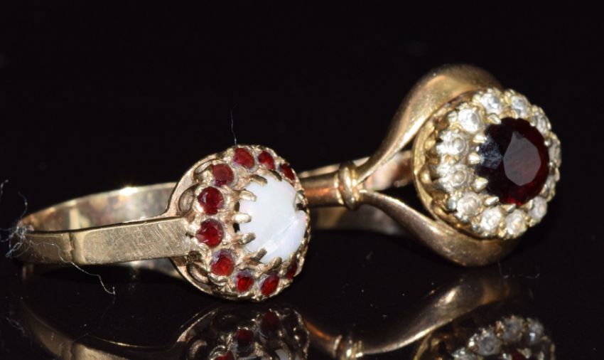 Two 9ct gold rings set with garnets, 5.5g, size M & K