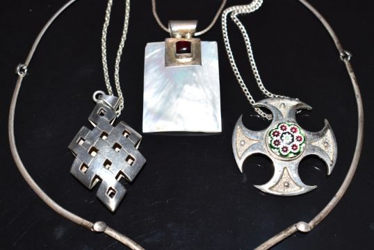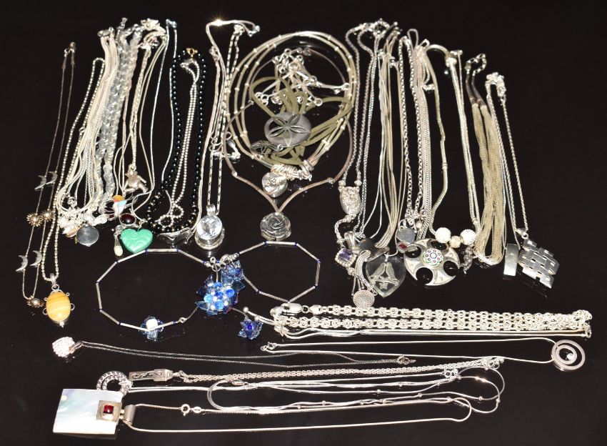 More than 30 silver necklaces/ chains including Caithness, cherub, mother of pearl, etc