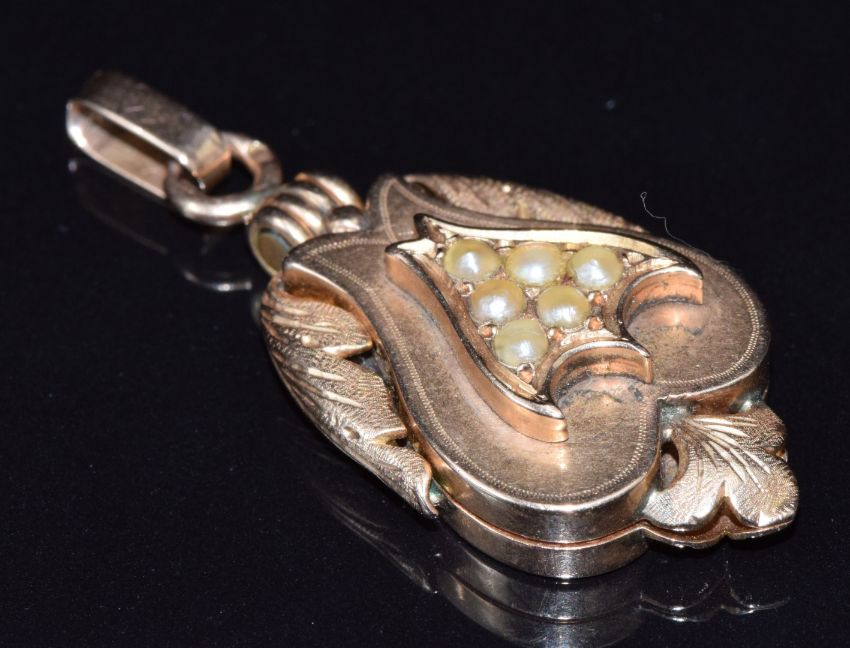 Victorian locket with foliate decoration set with seed pearls, 7.2g, 3cm