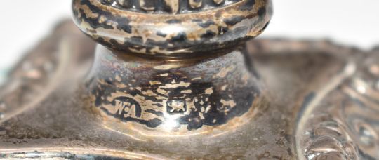 Pair of Victorian hallmarked silver candlesticks of column form, Chester 1898, maker William Aitken, height 11.5cm