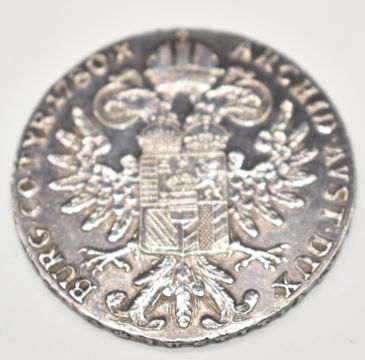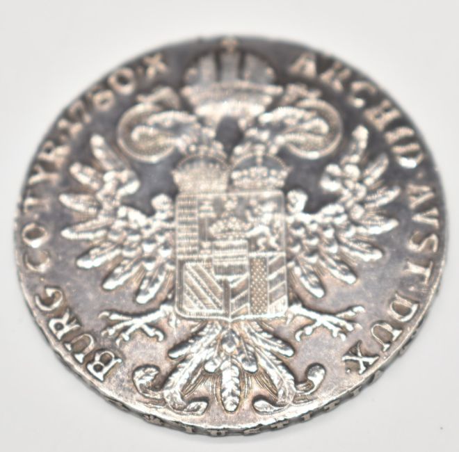 Maria Theresa silver coin and a hallmarked silver napkin ring, weight 95g all in