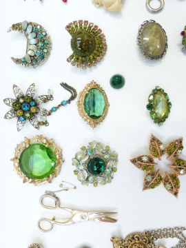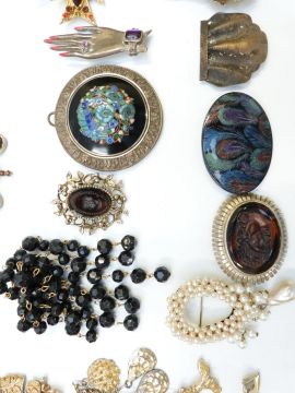 A collection of vintage brooches including Sphinx, Toledo, Coro Craft, Movitex, etc