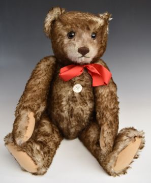 Steiff 1926 Replica Teddy bear with growler, brown tipped mohair, disc joints, cloth pads, stitched features and original labels, 65cm tall, in original box with certificate.