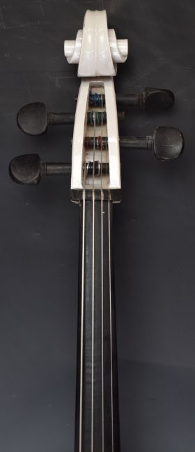 Full size modern cello and bow, finished in white, with bow