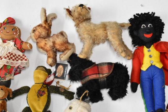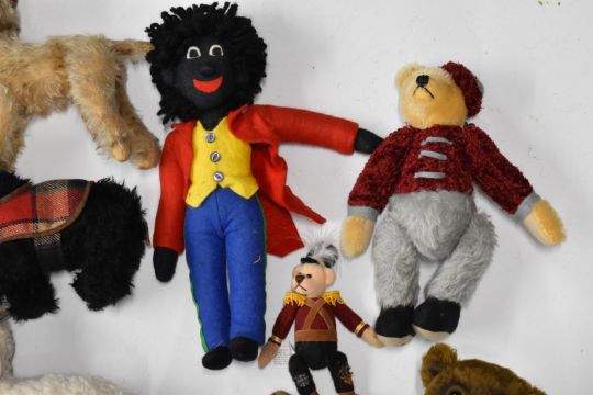 Nineteen various Teddy bears and animals including Steiff style miniature animals, straw filled examples, Both Bears, The Ganz Cottage, Cottage Collectibles, golly figure etc.
