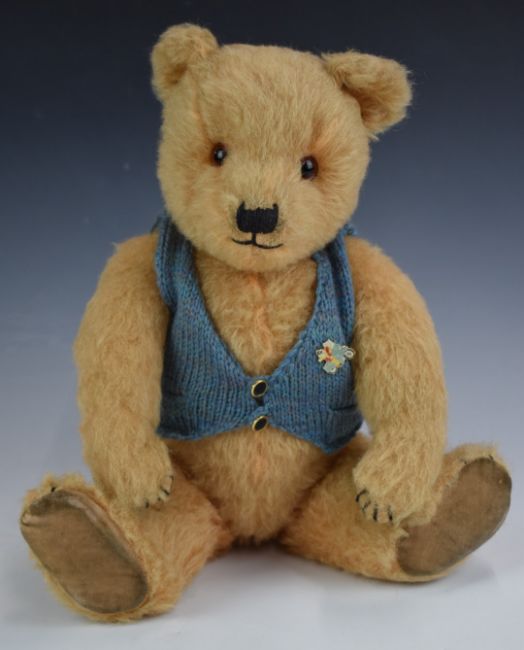 Chiltern Teddy Bear with squeaker, orange fur, soft filling, disc joints, velvet pads and stitched features, 42cm tall.