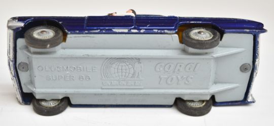 Corgi Toys diecast model The Man From UNCLE Gun Firing 'Thrush Buster' with purple body, lemon interior and bonnet decals, 497, in reproduction box.