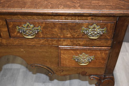 19thC oak lowboy raised on cabriole legs and fitted four drawers, W91 x D50 x H75cm