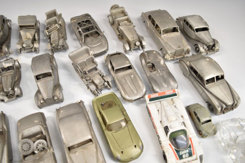Thirty-seven Danbury Mint pewter, Corgi and other model cars including Bentley, Jaguar, Rolls Royce etc together with a glass model car.