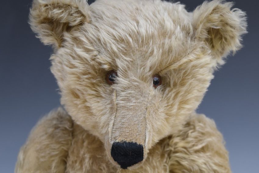 Steiff Teddy bear 'Tyllson' with growler, blonde mohair, straw filling, disc joints, stitched features and button to ear, 54cm tall.