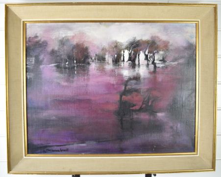 Marianne Grant (1921-2007) oil on board landscape with trees, signed lower left, 47.5 x 62cm, in part gilt frame