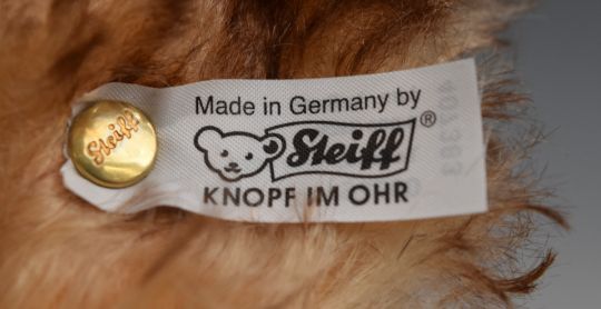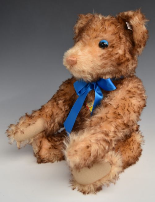 Steiff 1928 Replica Teddy bear with growler, tipped brown mohair, disc joints, cloth pads, stitched features and original labels, 42cm tall, limited edition of 3000, in original box with certificate.