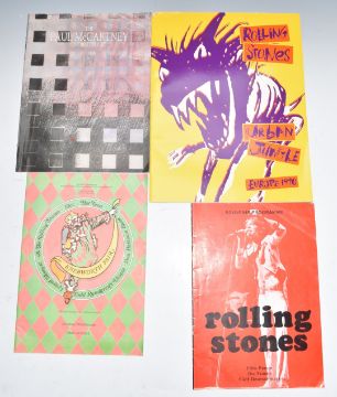Collection of music programmes including multiple Eric Clapton, Rolling Stones, Knebworth, Paul McCartney, Genesis, Dire Straits, Mid Summer Music of Wembley featuring Elton John, Beach Boys, Eagles etc and a Leonard Cohen 1993 World Tour book etc