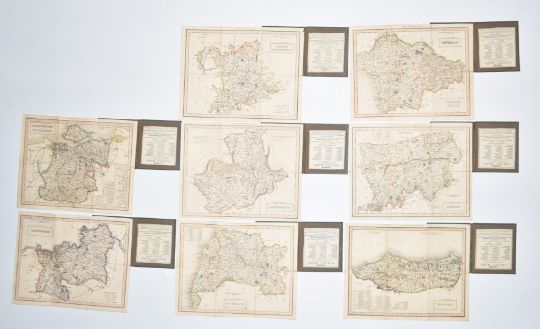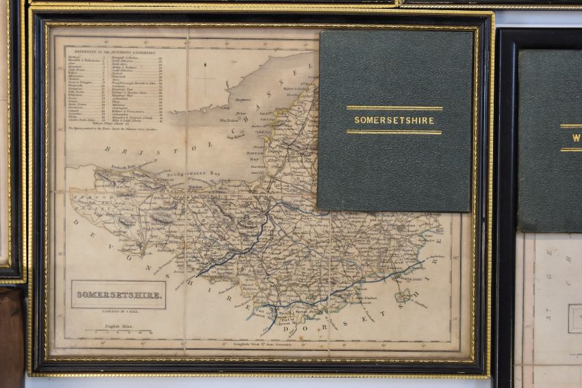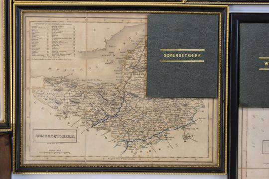 Forty four Sidney Hall county maps comprising 39 standard examples together with cover only for Warwickshire and Ireland, England, Ireland, Scotland and Yorkshire examples, some with covers but removed and framed, each approximately 25 x 19.5cm