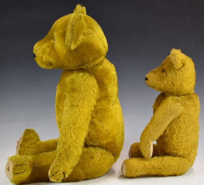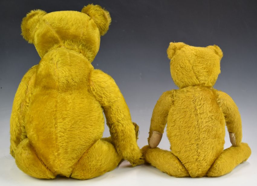 Two English Teddy bears both with growler, golden mohair, straw filling, disc joints and stitched features, largest 60cm tall.