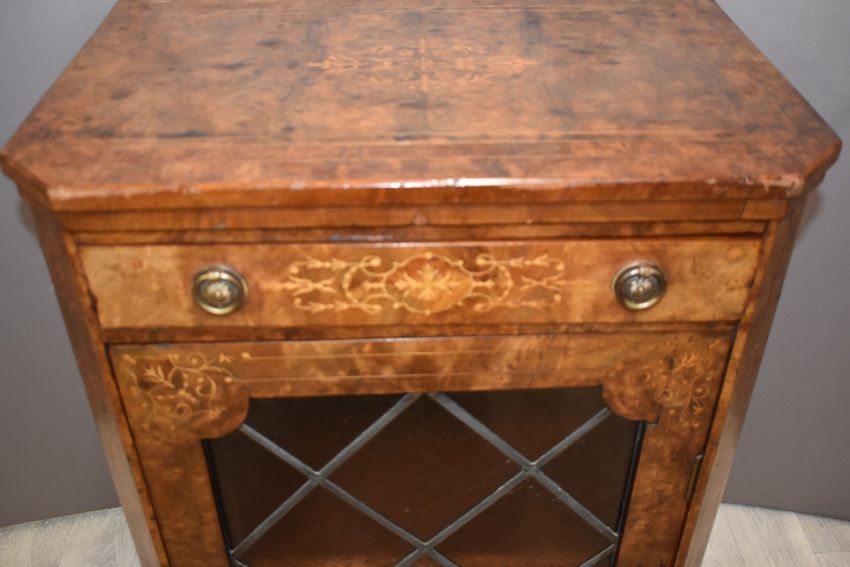 19thC burr walnut pier or music cabinet with drawer to top, W57 x D37 x H94cm