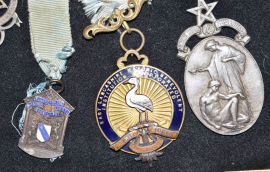 Masonic jewels and medals including African Gold Coast and Nigeria examples, four hallmarked silver examples and 1946 Royal Masonic Institute for Boys examples