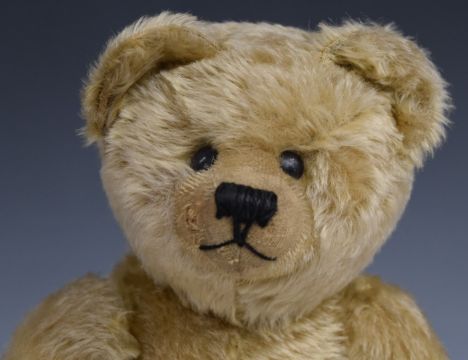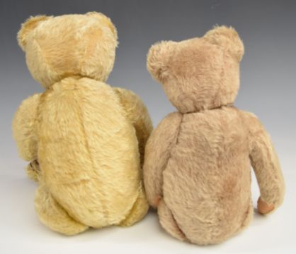 Two Steiff or similar Teddy bears both with blonde mohair, straw or similar filling, disc joints, felt pads and stitched features, largest 47 cm tall.
