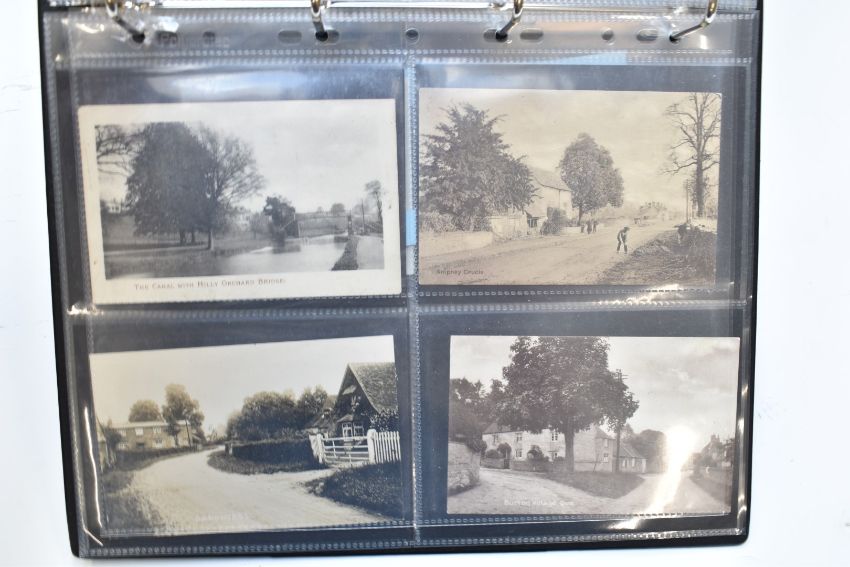 Postcard album entitled South Cerney, Fossebridge, Ewen, Kemble, Fairford, Chedworth, Birdlip, Cickley Hill, Cranham, Northleach and surrounding Cotswold villages, containing approximately 100 cards including Thames and Severn canal, Broadwell, Daglingworth, Mickleton, Charlton Kings etc