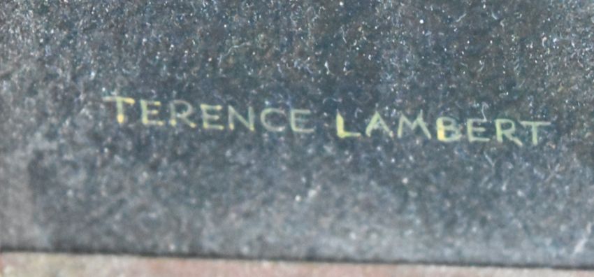 Terrence Lambert (b1951) acrylic on canvas study of a snipe in flight, signed lower left, 28 x 18.5cm, in gilt frame