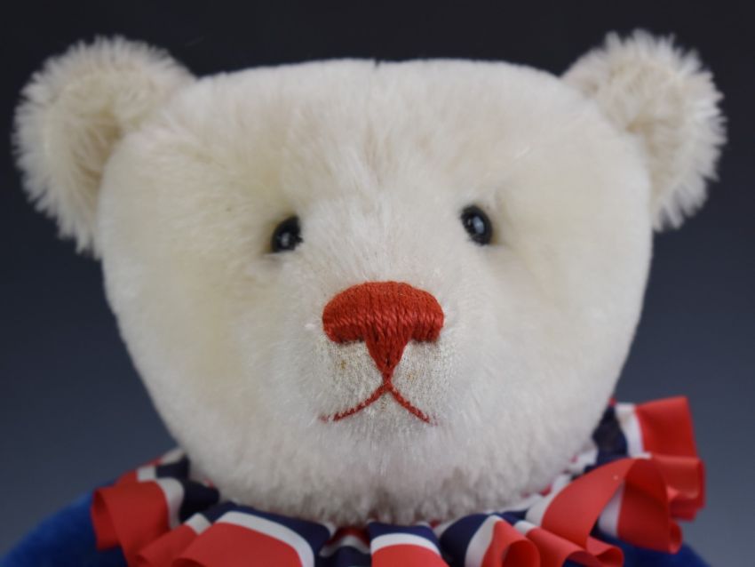 Kathleen Wallace for Stier Bears Teddy bear with growler, blue and white mohair, shaved snout, disc joints, star pads and original label, 54cm tall.