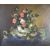 Oil on canvas vase of flowers on a table with bird perched on the rim, 62 x 75cm, in gilt frame