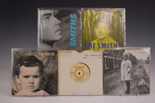 The Smiths - 9 singles comprising This Charming Man (no pic cover), Heaven, Joke, Shakespeare's, Bigmouth, Panic, Ask, Shoplifters and Last Night. Records generally EX with some wear to covers