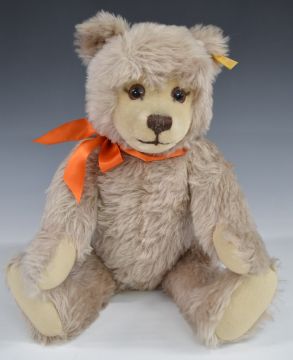 Steiff Teddy bear with growler, grey mohair, shaved snout, disc joints, cloth pads and stitched features, 40cm tall.
