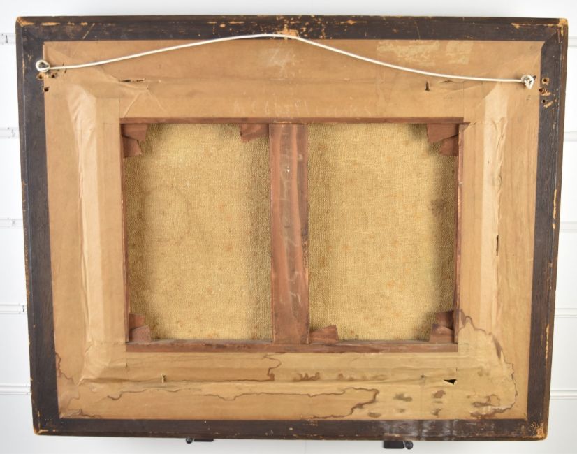 Paul Désiré Trouillebert (French, 1829-1900) impressionist river or lake landscape, signed lower left, 28 x 39cm, in gilt frame with artist's details below