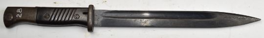 German 84/98 pattern bayonet stamped H1 ASW and 201 to ricasso, with 25cm fullered blade, scabbard and frog. PLEASE NOTE ALL BLADED ITEMS ARE SUBJECT TO OVER 18 CHECK ON COLLECTION OR DELIVERY