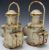 Two British Railways Midland region steam railway locomotive or similar hand lamps with brackets to rear, height 36cm