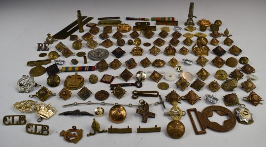 Collection of mainly metal rank insignia, together with some cap badges and buttons
