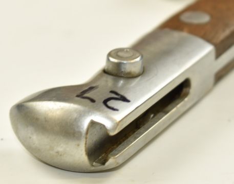 Swiss 1911/31 pattern bayonet stamped 855770 to crossguard and Elsener Schwyz to ricasso, with 29.5cm edged double blade with scabbard. PLEASE NOTE ALL BLADED ITEMS ARE SUBJECT TO OVER 18 CHECK ON COLLECTION OR DELIVERY