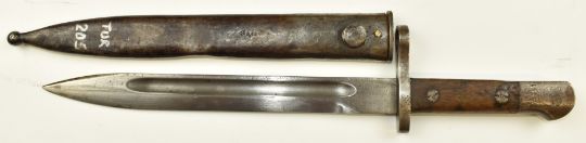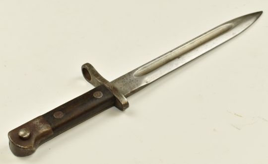 Turkish 1935 Mauser knife bayonet stamped 76361 to pommel, with 25cm fullered blade and scabbard. PLEASE NOTE ALL BLADED ITEMS ARE SUBJECT TO OVER 18 CHECK ON COLLECTION OR DELIVERY