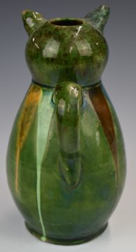 Farnham Art Pottery figural pig jug / ewer with multicoloured drip decoration, height 23cm
